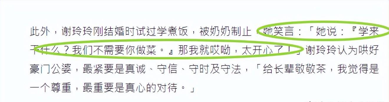 很多人港姐都希望嫁到豪门,但豪门的媳妇并不是那么好当,除了要断绝一些关系之外,还要不断孕育子女,为大家族带来新的机会。谢玲玲表示,自己每天早上都要给婆婆敬茶,而且时间要比婆婆起床早一会,虽说不用跪,但这样的行为与其做姑娘的时候大相径庭。不过也正是因为这样的“听话”,才使得余宝珠对其颇为青睐,时间久了,余宝珠看到了谢玲玲的贤惠,这才让其免了敬茶环节。