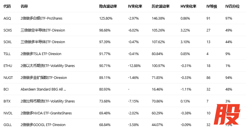 美股ETF引申波幅排行榜前十(标的要求:市值>100亿美元)保利配资